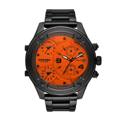 Diesel overflow watch black mens black stainless steel watch three hand quartz movement multi function subdials and date window matte metal link bracelet case measures 2 in diameter strap width measures 1. 2276 items on sale from 40. Shop mens diesel watches. Mens mega chief quartz stainless steel and leather chronograph watch color.