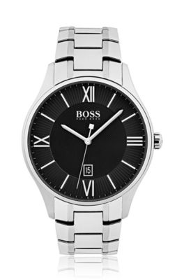 Hugo boss watches black. Best sellers boss gold collection hugo x liam payne collection hugo logo bossrenew logomania black tie online exclusives tokyo collection responsible golf collection. Hugo mens exist ultra slim quartz stainless steel and leather strap casual watch black 1520014. Sign up to receive collection preview mailers from hugo boss. Show off your love of the brand with sporty watches that have the boss name emblazoned across the strap.