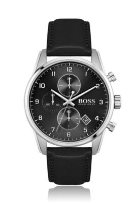 Opt for a timepiece that features the designers boat racing number complete with yachting timer and a reverse graduated countdown scale on the watch face. Hugo boss mens chronograph grand prix black leather strap watch 44mm 1513474 34500 earn bonus points now. Hugo mens guide ultra slim quartz grey ip and grey ip bracelet casual watch grey 1530012. Watches eyewear ties and pocket squares scarves hats and gloves socks.