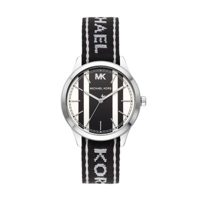 Michael kors access gen 4 mkgo black tone and silicone smartwatch. Buy michael kors watches at macys get free shipping with 99 purchase. Michael kors pyper three hand black leather watch. Runway snake embossed leather watch strap.