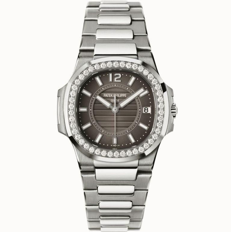 Patek Philippe 7018 1a 010 Nautilus Ladies 33 6mm Blue Mother Of Pearl Index Diamond Bezel Stainless Steel Date Brand New