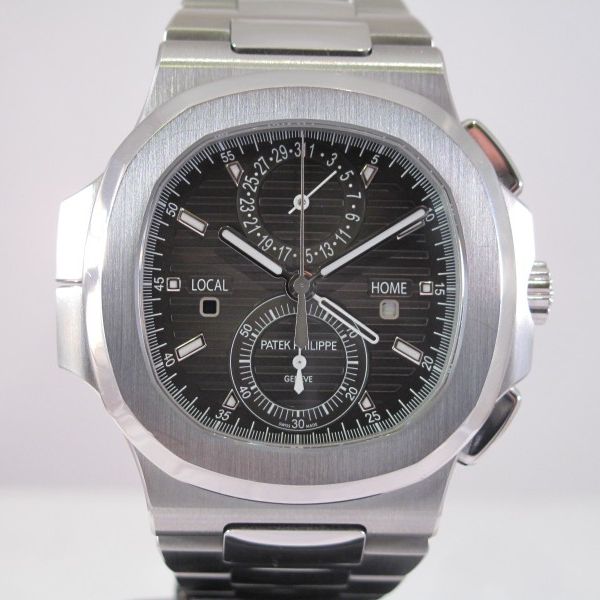 Patek Philippe Nautilus Travel Time Chronograph Stainless Steel Black Dial 5990 1a 001 Q63j53 Beverly Hills Watch Company